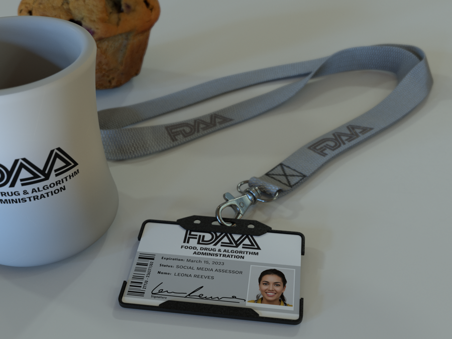 The idea of an FDAA is something I see as a kind of residue of a sequence of events that maybe start in one particular near future in which, I don’t know — let’s say Rep. Ted Lieu puts forth legislation that’s debated for months and months and that finally establishes the FDAA (Food, Drug and Algorithm Administration) — an evolution of the existing Food and Drug Administration (FDA).