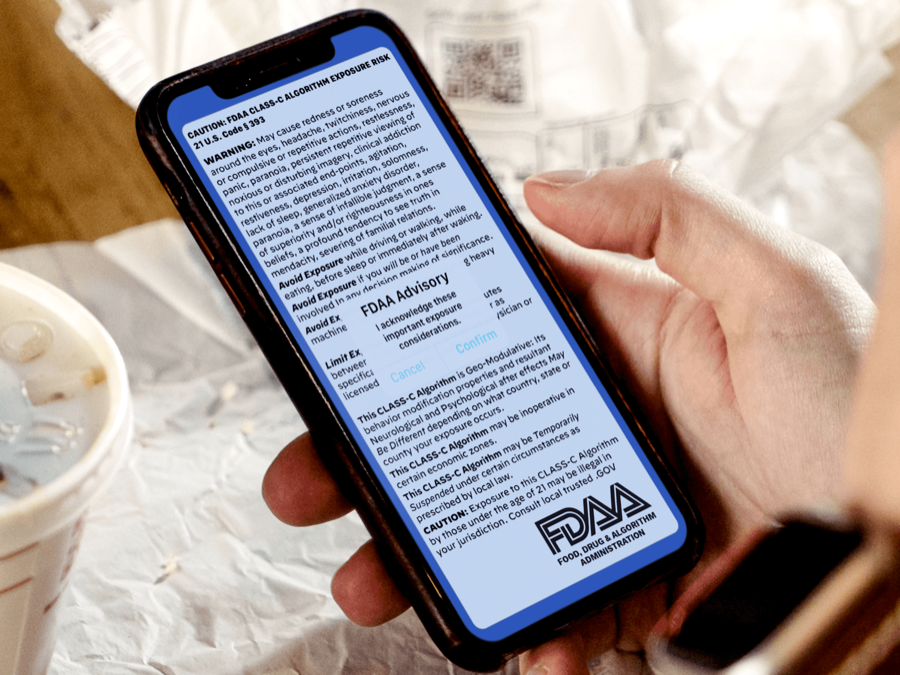 Maybe it’s, “Well, it may be best if an independent, publicly-managed third party like the FDA took an active role in managing this stuff because the Algorithm is a behavior-modifying neurotoxin like nicotine, opiods, and a lot of other classified products the consumer is exposed to so it kinda makes sense that such an administrative agency would play a role in sorting all this out.”