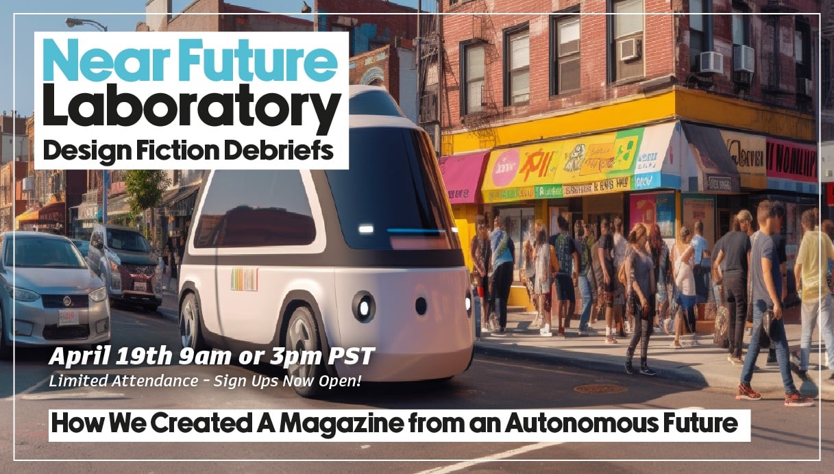 Please join me on April 19th at 9a PDT and-or 3p PDT on a deep-dive into an actual Design Fiction project and see how Design Fiction helped a real-world client gain an immense level of foresight into the future of autonomous vehicles.